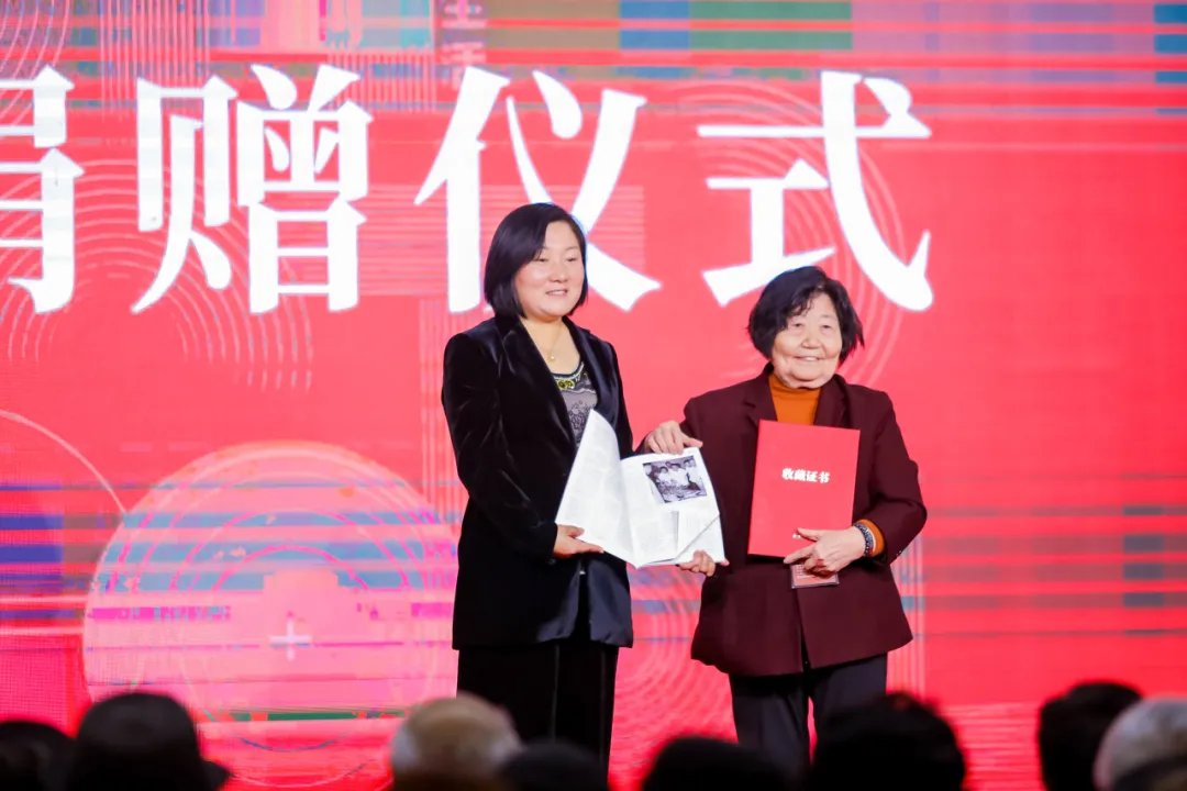 五棵松摄影器材城董事长朱秀英向和·艺术馆捐赠摄影画册,和众集团常务副总裁、和·艺术馆副馆长张玉兰代表和·艺术馆接收。