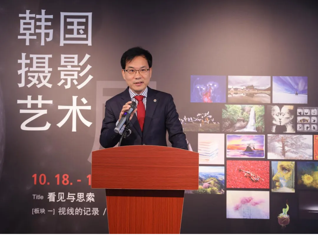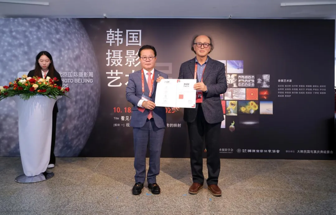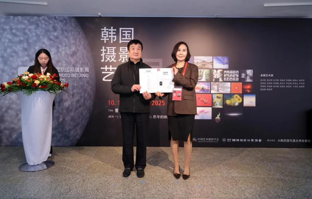 10月18日,“看见与思索”韩国摄影艺术展在中华世纪坛开幕。本次展览由中国艺术摄影学会和韩国写真作家协会联合主办,大韩民国写真庆典组委会承办。展览通过摄影艺术促进相互理解与文化交流,重点展示韩国社会与艺术的多样风貌。